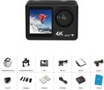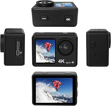 4K 30FPS Aksiyon Kamerası 16MP WiFi Spor Kamerası 160°Geniş Açı Lens Çift Ekran 30M/98ft Su Geçirmez Muhafaza ile Su Geçirmez Dalış Sörf Kayak Bisiklete binme için Montaj Aksesuarları Kiti