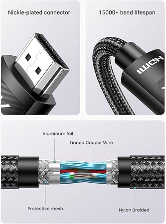 GENİŞ UYUMLULUK: Bu 4K HDMI kablosu, önceki sürümlerle geriye dönük uyumludur (HDMI 1.4, HDMI 1.3, HDMI 1.2, HDMI 1.1 ve HDMI 1.0). HDTV, 4K TV, Ultra HD monitör, Blu-ray oynatıcı, PS5/PS4/PS3, Xbox Series S, projektör, bilgisayar, DVD, medya oynatıcı, DVB/TV/AV alıcısı, TV Box, Sky Box gibi HDMI özellikli cihazlarla geniş bir uyumluluk sunar.