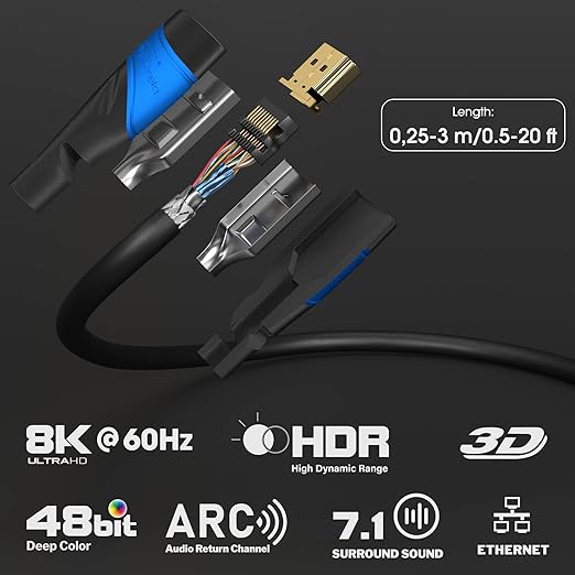 – 4K ve 8K HDMI Kablosu – 2m – 0,15-22,5m arasında mevcut – Her HDMI bağlantısı için (4K@120Hz & 8K@60Hz, Yüksek Hızlı Ethernet, TV, Blu-ray, PS5, Xbox, Switch – siyah)