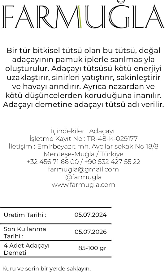 %100 Doğal ve Elle Toplanmış Adaçayı: Her bir tütsü çubuğu, saf ve güçlü bir temizleme deneyimi sunarak en yüksek kaliteyi ve etkiyi sağlamak için özenle seçilir ve elle toplanır.