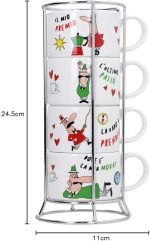 – 4’lü İstiflenebilir Cappuccino Fincan Seti – Karma Renkli – Porselen