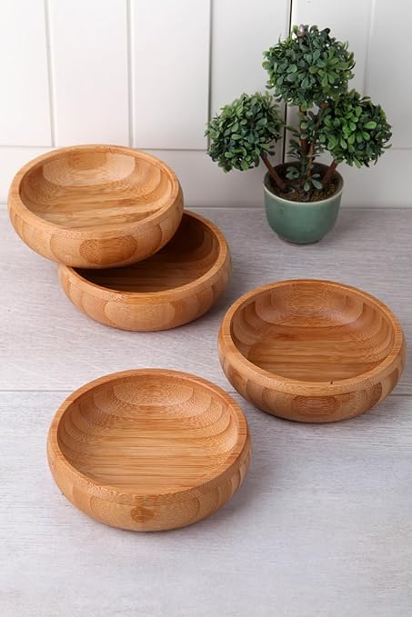 4’lü Yuvarlak Bambu Çerezlik – Doğal Bambu Sunum Kasesi, Zeytinlik ve Kahvaltı Sunumluğu | Çok Amaçlı Dayanıklı ve Şık Tasarım