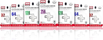 4’ü 1 Arada OTG Flash Bellek, USB 2.0/Type-C/Lightning/Micro USB, 15-30MB/s Okuma, Çinko Alaşım, Su Geçirmez, Tablet, Telefon, PC İle Uyumlu (128, GB)