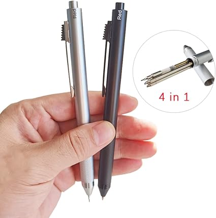 4’ü 1 arada tükenmez kalem, metal, çok renkli, siyah, mavi, kırmızı, mürekkep, tükenmez kalem, 1 otomatik kurşun kalem, okul, ofis, kırtasiye, hediye (gümüş rengi)