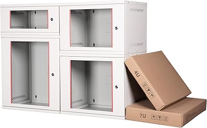 4U 19″ Security Box Duvar Tipi Kabinet, Demonte, 542mm Genişlik, 400mm Derinlik, Açık Gri Renk