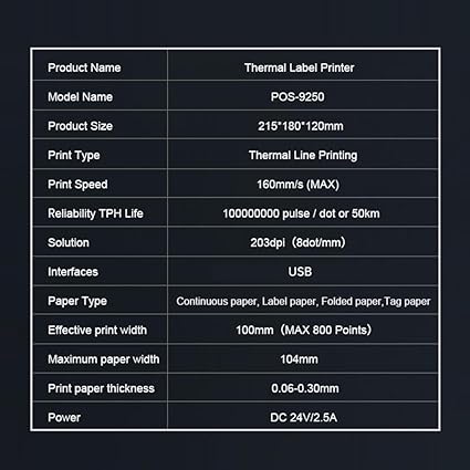 ♦ [Net Baskı] 203 dpi çözünürlüklü li baskı kafası, net baskı kalitesi, güvenilir ve düşük gürültü sağlar. 50km’lik baskı kafası ömrü, uzun süre kullanmanıza hizmet edebilir. Maksimum Baskı kağıdının genişliği 104 mm’dir ve etkin baskı genişliği 100 mm’dir.