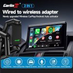Carlinkit 5.0 kablosuz adaptör: Kablosuz CarPlay ve Wireless Android Auto (2’si 1 arada) dekleyen ve aracınızın kablolu CarPlay’ini kablosuz CarPlay’e dönüştürmek için geliştirilen kullanıcı do bir cihazdır. Kablo bağlarını bırakın (lütfen satın almadan önce aracınızın Clay veya Android araç desteklediğini oylayın). Uyarı: BMW ve MG modelleri desteklenmez!