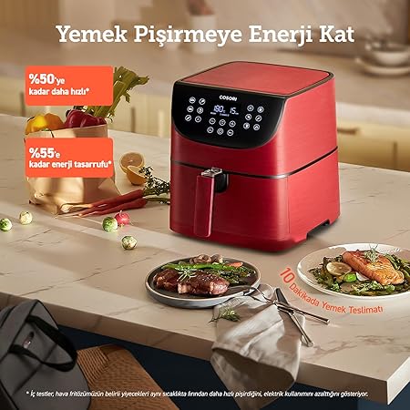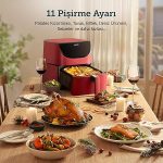 “5.5 L Yağsız Fritöz, 11 Programlı Sıcak Hava Fritözü, İspanyolca 100 Tarif, Sıcak Tutma Fonksiyonlu, LED Dokunmatik Ekran, Zamanlayıcı, 1700 W, Kırmızı” için yorum yapan ilk kişi siz olun Yanıtı iptal et