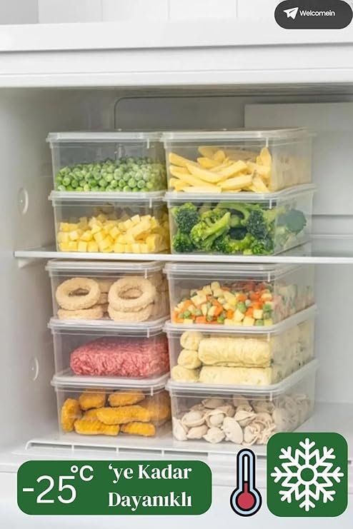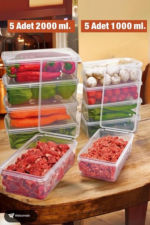 5 Adet 2 Lt. 5 Adet 1 Lt. Kendinden Kapaklı Derin Dondurucuya Uygun Buzluk Saklama Kabı Düzenleyici