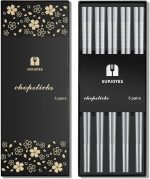 5 Çift Paslanmaz Çelik Yemek Çubuğu, Tekrar Kullanılabilir Yemek Çubuğu, Bulaşık Makinesinde Yıkanabilir Metal Yemek Çubuğu, Japon Çubuğu, Hediye Seti, Mat