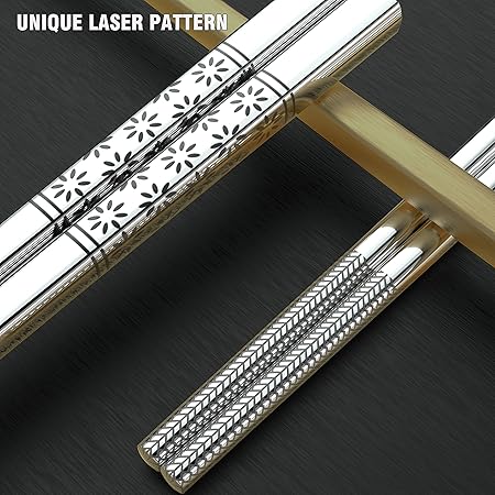 ✿ 【Benzersiz lazer gravür deseni】 SUPJOYES metal yemek çubukları, parlak gümüş gövde üzerinde lazer gravürlü kiraz çiçeği deseni ile donatılmıştır. Güçlü Asya geleneklerine sahip tipik bir Japon tarzıdır. Sushi, sashimi, makarna, köfte, sıcak tencere ve diğer Asya yemeklerinin tadını çıkarmak için mükemmeldir. Uzun süreli kullanımdan sonra solmaz.