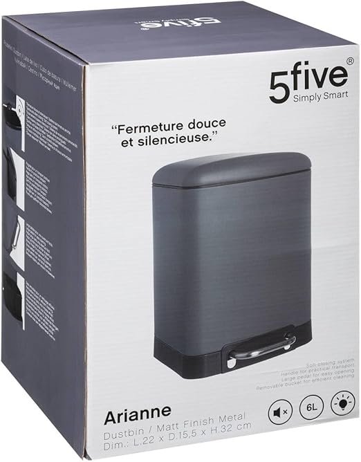 5 FİVE Ariane Antrasit Gri 6 Litre, Çöp Kovası