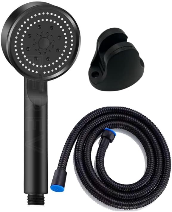 5 Fonksiyonlu Yüksek Basınçlı Duş Başlığı Mafsalı 150 Cm Hortum Siyah Duş Seti