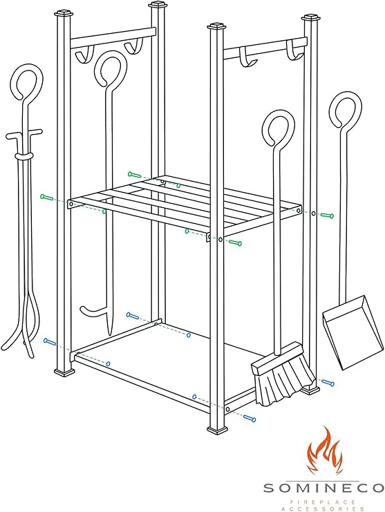 Ürün Özellikleri Ve Kutu İçeriği: 1 Adet 2 Katlı Metal Raflı Odunluk 1 Adet Fırça 1 Adet Kürek 1 Adet Maşa 1 Adet Ateş Süngüsü 4 Adet Metal Kanca
