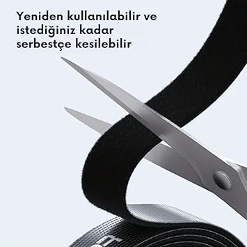 5 Metre Cırt Cırt Bantlı Kablo Sarıcı Düzenleyici Organizatör, Kesilebilir Kablo Düzenleyici Siyah