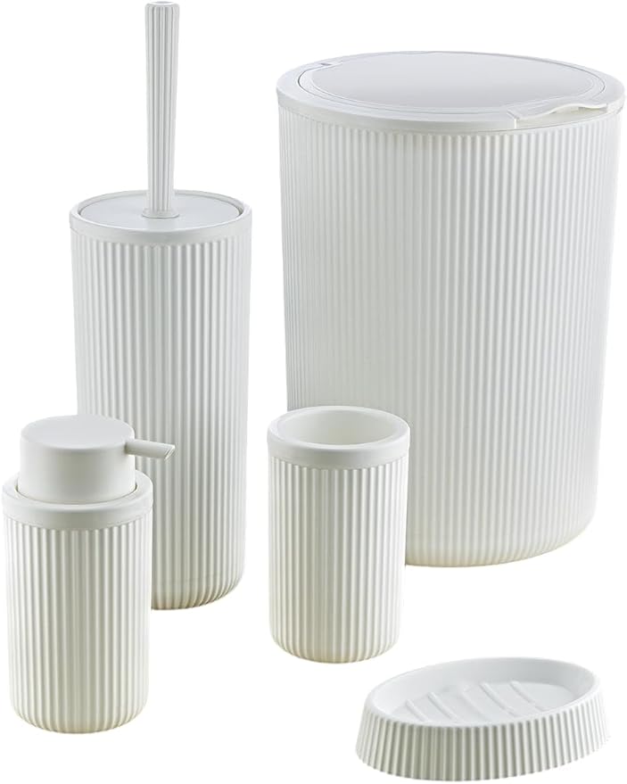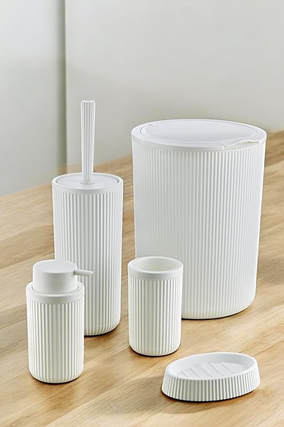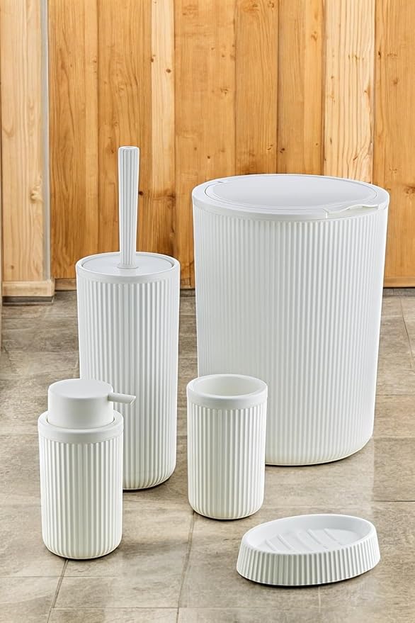 7 Litre Dokunmatik Çöp Kovası: Dokunmatik kapağı ile pratik kullanım ve koku engelleme. Antibakteriyel Tuvalet Fırçası: Mikrop oluşumunu önleyen hijyenik tasarım. Sıvı Sabunluk: Modern ve ergonomik pompası ile rahat kullanım. Diş Fırçalık: Fırçalarınızı düzenli ve temiz tutmak için ideal. Katı Sabunluk: Kompakt boyutuyla yer tasarrufu sağlar.