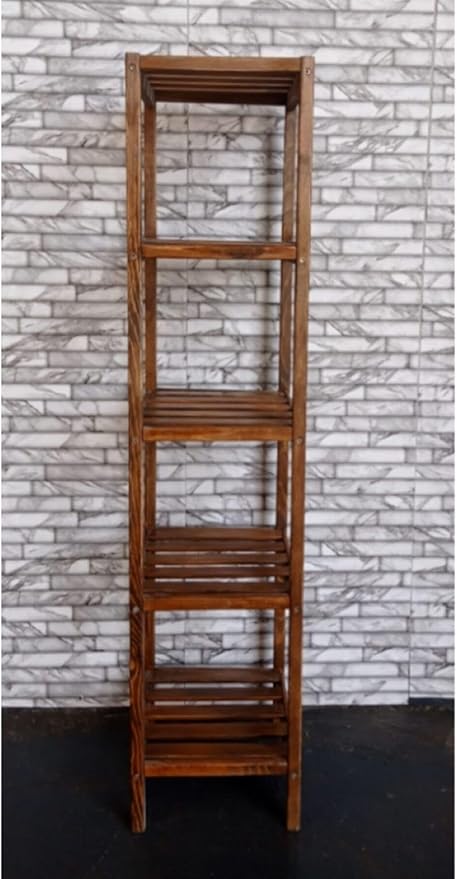 5 Raflı Ahşap Izgaralı Banyo Rafı Havluluk Kitaplık Banyo Düzenleyici Dekoratif Çiçeklik