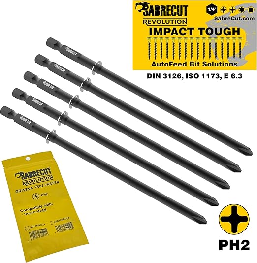 5 x SC146PH2_5 146 mm PH2 Uyumlu Bosch MA55 MA 55 2608522068 ile Uyumlu Otomatik Besleme Sıralı Alçıpan Tornavida Tabanca Ucu Tek Uçlu Phillips No.2 Ağır Hizmet