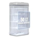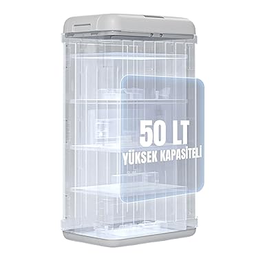 YÜKSEK KAPASİTE: 50 Litre Dev Kapasite: 62cm (Y) x 36cm (G) x 26cm (D) boyutlarındaki geniş iç hacmiyle sık çöp boşaltma ihtiyacını ortadan kaldırır, aileler ve iş yerleri için idealdir. 50 litre hacimli geniş iç hazne, günlük ev ve ofis kullanımı için ideal boyut