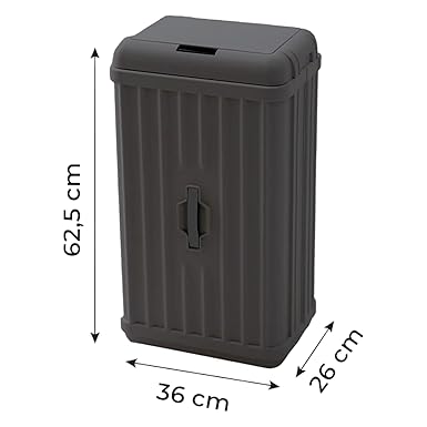 50 Lt Sensörlü Çöp Kovası, Portatif Katlanabilir, Büyük Boy Premium (62x36x26cm), Otomatik Dokunmatik Hareket Sensörlü Akıllı Mutfak Banyo Ofis Çöp Kutusu (ANTRASİT)