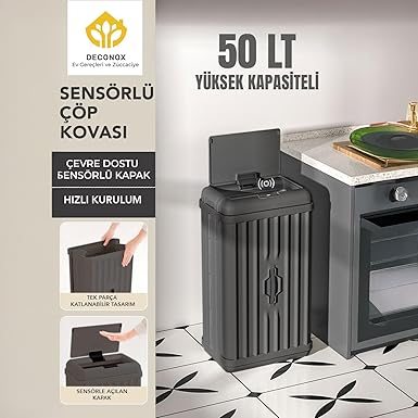 “50 Lt Sensörlü Çöp Kovası, Portatif Katlanabilir, Büyük Boy Premium (62x36x26cm), Otomatik Dokunmatik Hareket Sensörlü Akıllı Mutfak Banyo Ofis Çöp Kutusu (ANTRASİT)” için yorum yapan ilk kişi siz olun Yanıtı iptal et