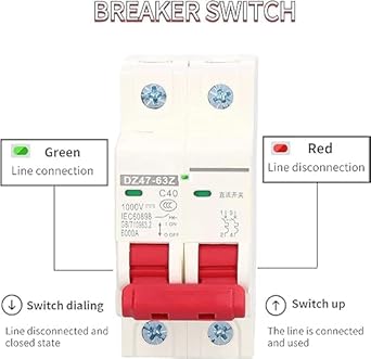 500V DC Devre Kesici, 2 Kutuplu 40a DC Minyatür Devre Kesici MCB PV Bağlantı Kesme Anahtarı Solar PV Sistemi Devre Kesici Güneş Panelleri Için DC Bağlantı Kesme Anahtarı Fotovoltaik Sistem