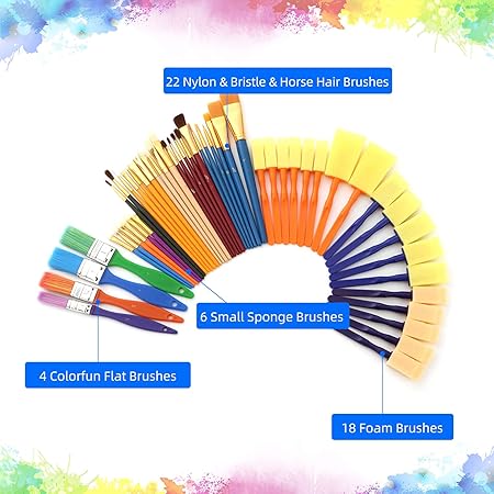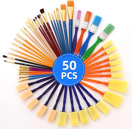 50PCS Boya Fırçaları Çok Amaçlı Yıkanabilir Boya Fırçaları Seti A st Çeşitli Değer Paketi Sünger Boyama Fırçası Seti Düz Yuvarlak Köpük Uçlu Çok Renkli