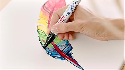 Açık veya koyu yüzeylerde kolay ve doğal çizim imkanı sunan orta uçlu akrilik kalem; tuval, akrilik kağıt ve boyama tahtaları gibi malzemeler için idealdir
