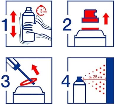 Çabuk kuruyan sprey boya; ilk kuruma 1-3 dakika; dokunma kuruluğu yakl. 10 dakika; tamamen kuru yakl. 30 dakika (çevredeki ortama ve boya kalınlığına bağlıdır)
