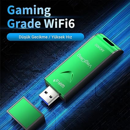 VegGieg 5400Mbps Gigabit 2.4GHz / 6GHz 3 Bantlı Gaming WiFi Alıcı Verici Adaptör, bilgisayarınıza WiFi özelliği kazandırmakla kalmaz, aynı zamanda bilgisayara gelen kablolu interneti WiFi üzerinden paylaşarak modemden uzakta bulunan alanda daha hızlı bir kablosuz internet bağlantısı sağlar. WiFi6 teknolojisi ve 2.4GHz / 6GHz çift bant ile donatılmış olması V-K5400’ün en önemli özellikleridir. Bu sayede en hızlı ve en stabil bağlantıyı sağlar, özellikle oyun oynarken düşük gecikme ve yüksek hız verir. Tek seferlik sürücü kurulumunun ardından tak çalıştır olarak kullanabilirsiniz.