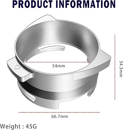 Bu kahve dozlama halkası, sağlam ve dayanıklı performans, paslanmaz ve korozyon önleyici özelliklere sahip yüksek kaliteli alüminyum alaşımdan yapılmıştır, böylece kahve yapma işleminizi daha sağlıklı ve güvenli hale getirir.