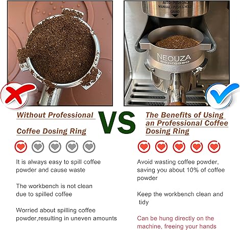 Mesaj ve israftan kaçının – kahve dağıtıcı halkası artık kahveyi boşa harcamaz ve tezgahınızı karıştırmaz – bir kahve dağıtım hunisi ile kahvenin tamamı portafiltre sepetine yönlendirilir, kurcalama veya dağıtıcınızı kullanmayı çok daha kolay hale getirir.