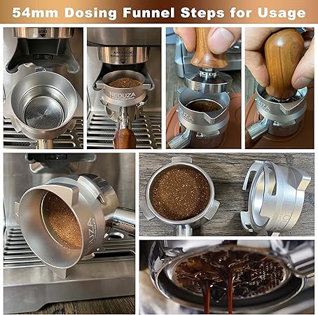 Temizlemesi ve kullanımı kolaydır – 54 mm elek hunisi bulaşık makinesinde yıkanabilir. Sadece suyla durulayın ve bir fırça veya süngerle temizleyin. Kullanmak için, huniyi portafilterinizin iç kenarına yerleştirin.
