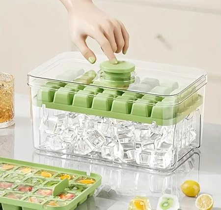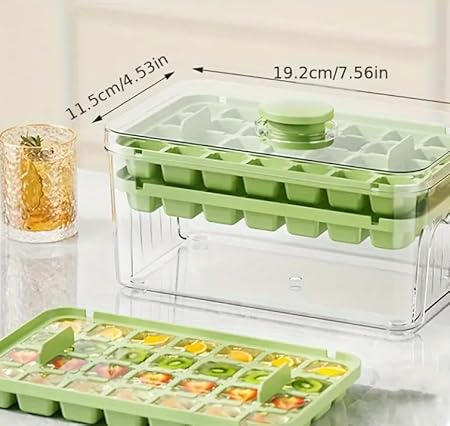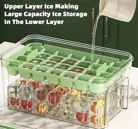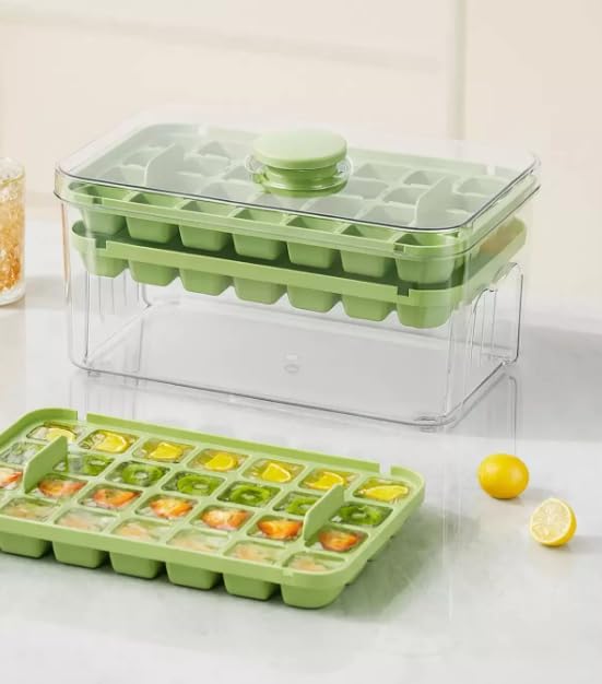 56’lı 2 Katlı Mika Buz Kalıbı Hazneli ve Basmalı Buzluk – Silikon Buz Kalıbı Seti – Kolay Buz Çıkarma – Geniş Buzluk Kutusu – Buz Saklama Kabı – Sağlıklı ve Pratik