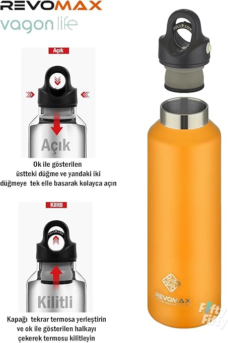 592 ML Büyük Kapasiteli Özel Kapak Sistemli 18saat Sıcak/36 Saat Soğuk Çelik Termos -592ML