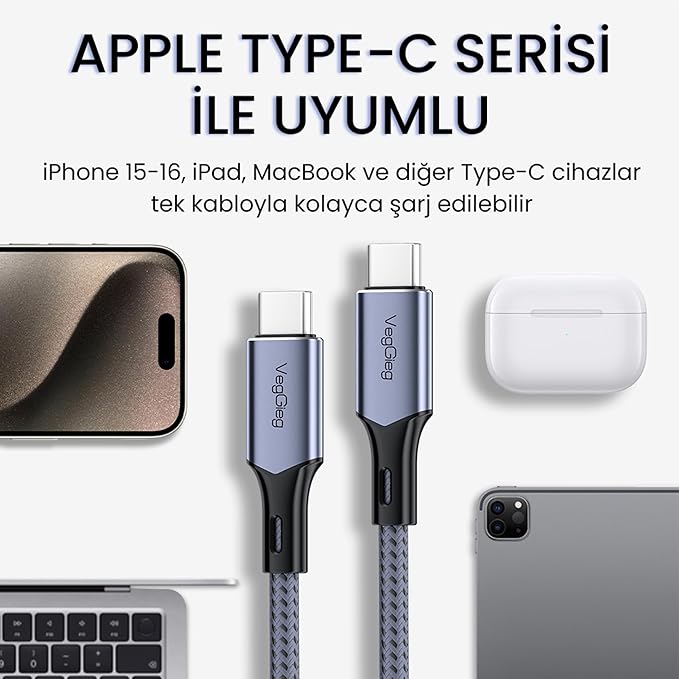 USB-C to USB-C hızlı şarj ve data kablosu