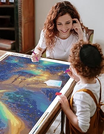 【Büyük Boy】 Instarry büyük boyutlu 5D elmas boyama üzerine odaklanmaktadır. Büyük boyut, daha net desenler ve daha canlı ayrıntılar anlamına gelir. Renkli ve üç boyutlu, çapraz dikiş nakışından daha güzel. Elmas boyama kiti klasik sanat eserlerini gerçekleştirmek kolaydır, yapmanın keyfine varacaksınız