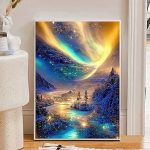 5D Elmas Boyama Kiti Büyük Boy Tam Elmas Aurora Manzarası Mozaik Çapraz Dikiş Oturma Odası Yatak Odası Duvar Dekoru 60×40 cm