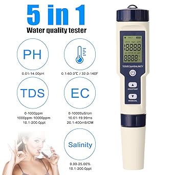 5’i 1 Arada Profesyonel Çok Parametreli Combo Test Ölçer PH/EC/TDS/Tuzluluk/Termo Dijital Çok Fonksiyonlu Test Cihazı Su Kalitesi Test Cihazı Arkadan Aydınlatmalı