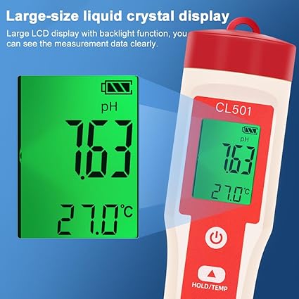 【5’i 1 arada Klor Ölçer】: Yüzme havuzlarında pH, ORP, klor, H2 ve sıcaklığı ölçmek için çok işlevli su kalitesi test cihazı. Havuz veya spa klor seviyelerini güvenlik sınırları içinde tutmak için artık klor seviyelerini doğru bir şekilde
