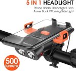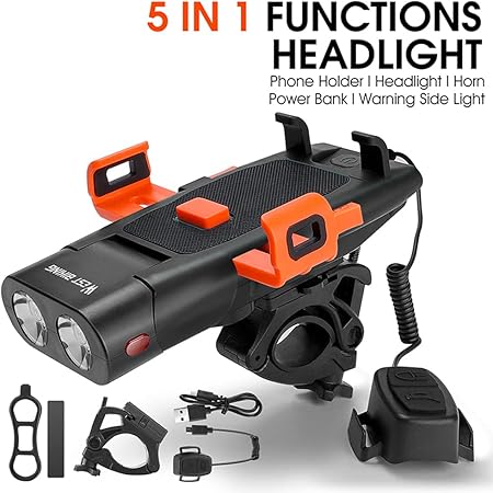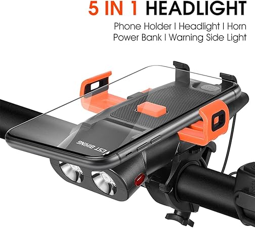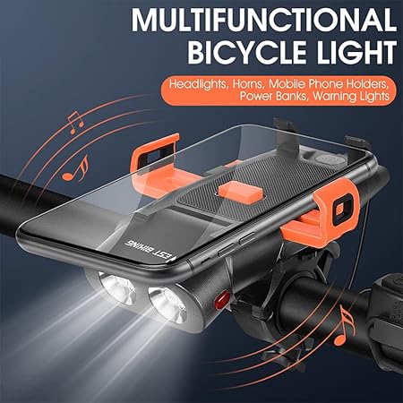 5in1 LED Bisiklet Ön Braket Lamba Korna Cep Telefonu Tutucu Uyarı Çanı Powerbanks MTB El Feneri USB Akuarları ile 5 Alarm Efektleri