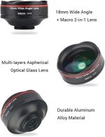 5K Ultra HD Akıllı Telefon Kamera Lensi 18mm 128 ° Geniş açılı 15X Makro Telefon Lensi Universal Clip ile Distorsiyonsuz iPhone Akıllı Telefonlarla Uyumlu