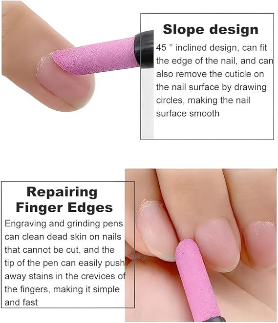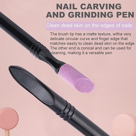 【Tasarım】Tırnak derisi kalemi iyi düşünülmüş bir tasarıma sahiptir. Tırnakları konik bileme taşı ile parlatmak için bir uç.