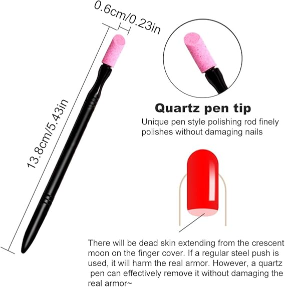 Yüksek kaliteli malzeme: Tırnak itici kalemimiz uzun ömürlü malzemeden üretilmiştir. Kuvars başlık aşınmaya dayanıklıdır ve uzun süre kullanılabilir. Hassas bileme için insancıl sap. Antibakteriyel sabun veya alkol ile kolayca temizlenir.