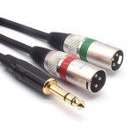6.35mm stereo – XLR kablosu, 6.35 mm jak mikrofonların DV kameralara, video kameralara veya XLR bağlantısına sahip diğer profesyonel ses cihazlarına bağlanması için mükemmeldir. Bu, stereo sinyal ses cihazını XLR girişi olan profesyonel bir ses cihazına bağlayan 6.35 mm erkekten çift XLR erkek stereo ses kablosıdır. Çift XLR sol ve sağ kanallara ayrılmıştır (kırmızı ve yeşil işaretleme)