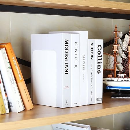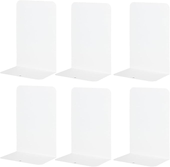 6 adet beyaz metal kitap desteği, raflar için kitap destekleri, kitap tutmak için dayanıklı kitap destekleri, raflar için kitap durdurucu, ağır kitaplar, dekoratif, ev, ofis, çocuklar