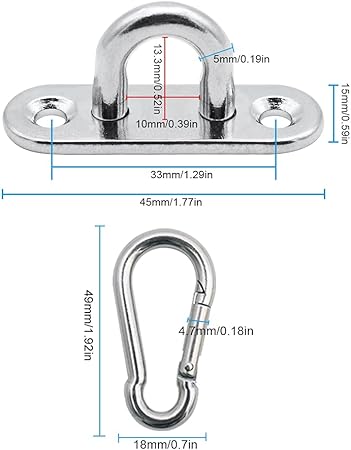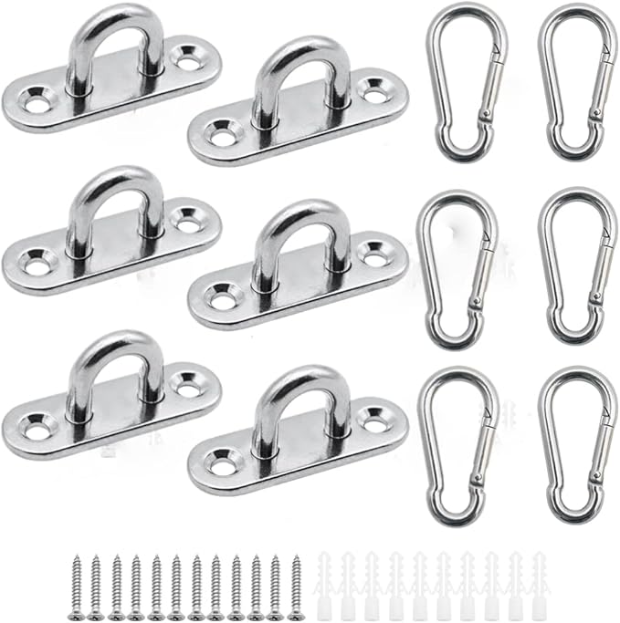 【Miktar ve boyut】 Her paket 6 göz plakası U kancası ve 6 karabina halka içerir. Ayrıca 24 paslanmaz çelik vida ve 24 beyaz genişleme borusu vardır. Miktar büyüktür ve farklı ihtiyaçlarınızı karşılayabilir.