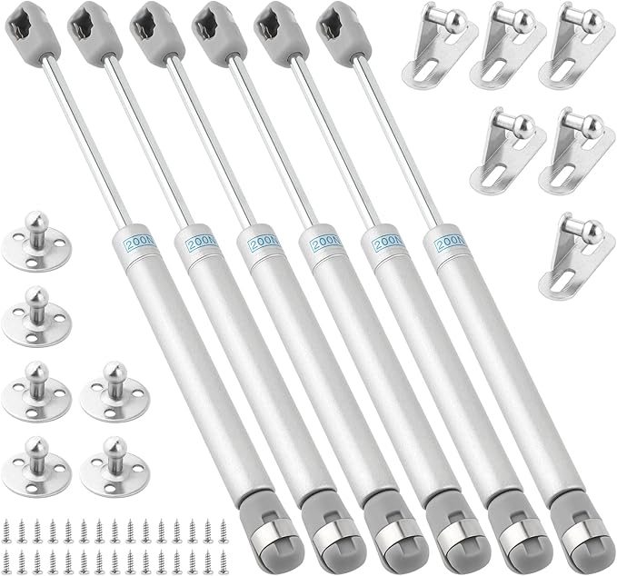 6 adet gazlı amortisör, hidrolik gazlı amortisör 200 N, gümüş rengi düz gazlı amortisör, mobilya taşıyıcı, dolap kapısı sönümlemesi ve arabalar için gaz basınçlı yay