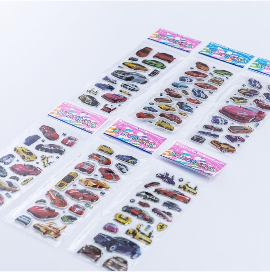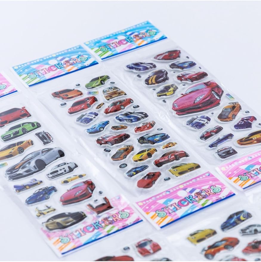 6 Adet Kabartmalı Yapışkan Sticker, Süper Arabalar