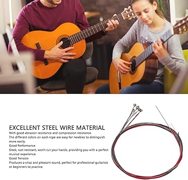 [Net ve Hoş Ses] Akustik gitar teli değişimi, profesyonel gitaristlerin, öğrencilerin veya yeni başlayanların pratik yapması için net ve hoş bir ses üretmek için iyi bir gerilime sahiptir.